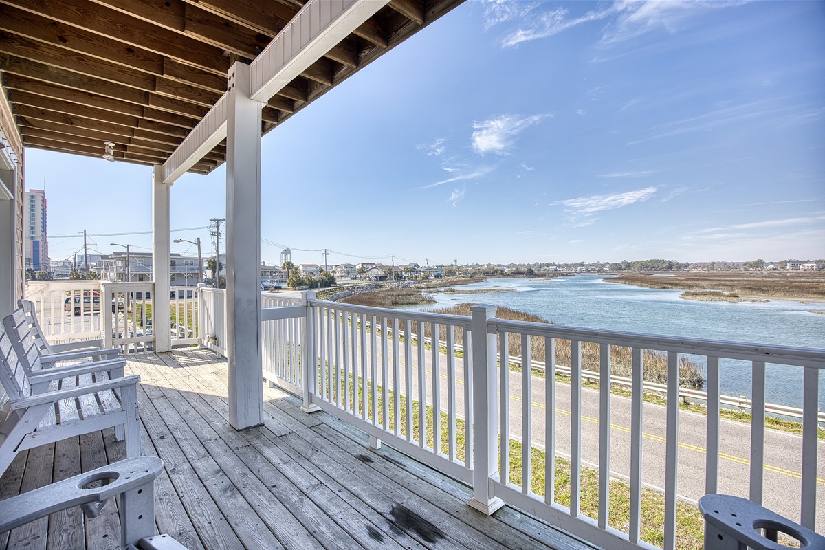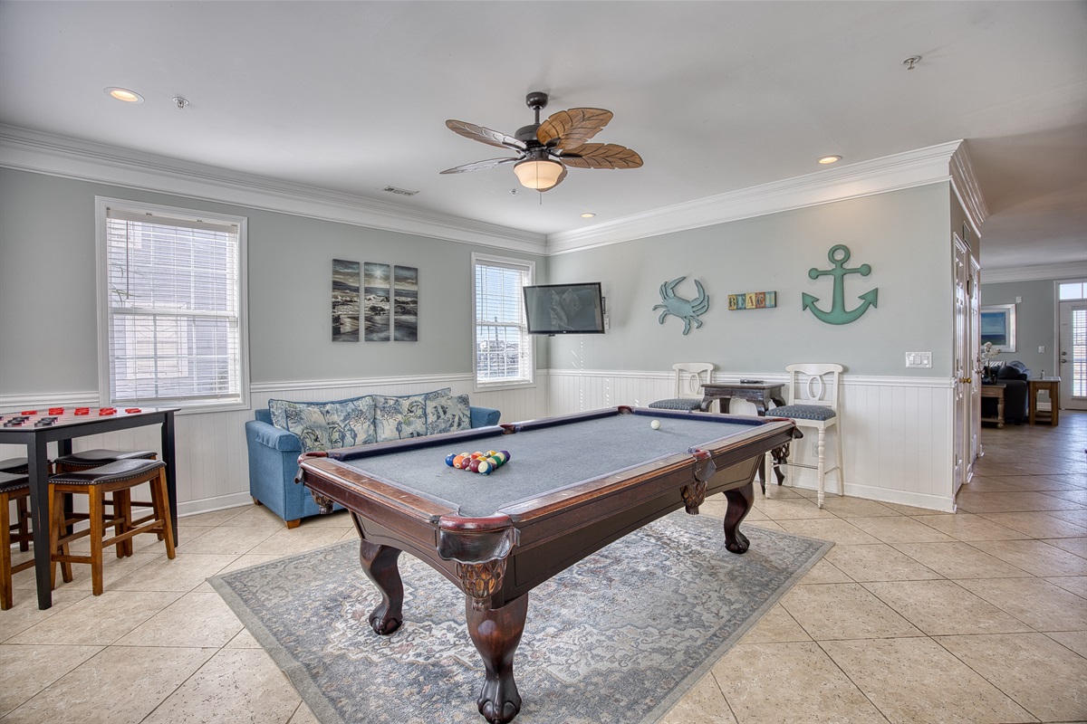 Great beach house located just steps away from Cherry Grove Beach in North Myrtle Beach! This home sleeps 22 comfortably with 8 Bedrooms, 7 Full Baths, and 3800 SF of living space! There are (2) Master King Bedrooms with en suit baths, (2) Double King rooms with attached baths, (2) King rooms with attached baths, (1) Swing/King room, (1) Double Queen room and (1) Full Size Sleeper Sofa if needed. Every bedroom has its own Smart TV & DVD, including one in the Family Room. This home also includes a game room with a pool table & Smart TV, a spacious kitchen, breakfast bar, dining area, family room, another full bath and 3 Balconies with amazing views of the salt water marsh! Two of the balconies are attached to the Master Bedrooms. Plus, the home is conveniently located across from the beach! Come back from a day at the Beach or golf and enjoy the Pool, hot tub, 3 outdoor charcoal grills and large picnic table all available for your enjoyment. A variety of nearby restaurants, shops and entertainment options are sure to please everyone in your group. You are also only steps away from the salt water marsh for crabbing and flounder fishing for your vacation enjoyment. If your a golfer, host your next Grand Strand premier golf getaway in this home, which fits (6) foursomes when you play on one of the top courses nearby.