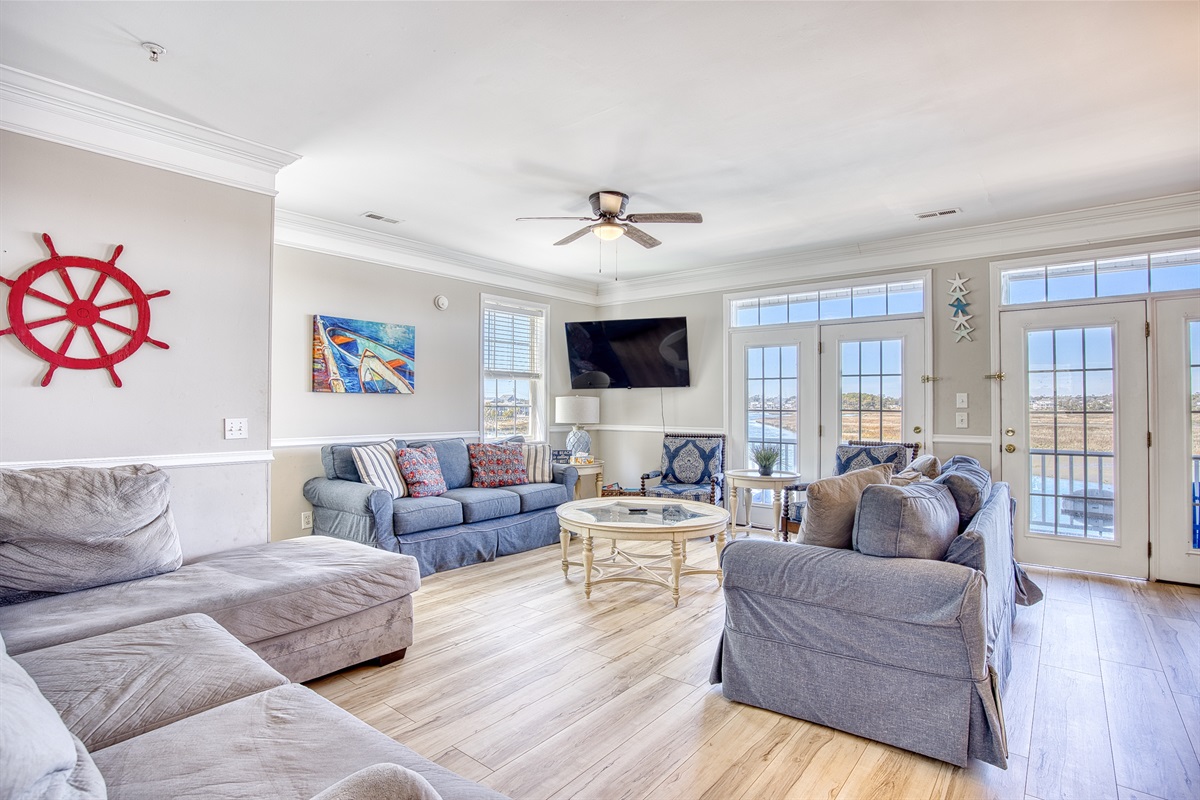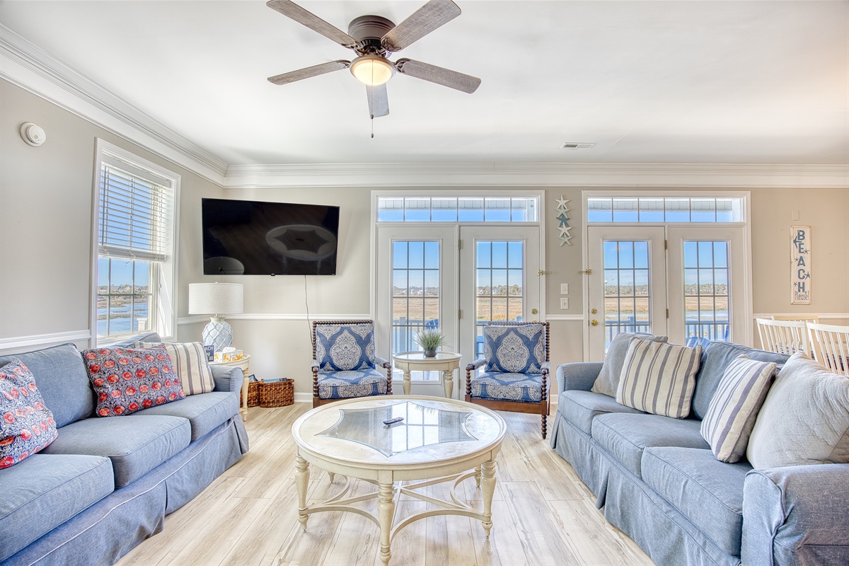 ABOUT THE SPACE: Cayman Vilas Unit D-1 is located in a second row residential community in the Cherry Grove section of North Myrtle Beach. This house comes with a view of the Channel. It accommodates up to 24 guests with 8 bedrooms and 7 bathrooms. There are 4 parking spaces available. Motorcycles and trailers are not allowed. It offers a fully equipped kitchen with stainless steel appliances. Washer and Dryer. Linens and Departure Maid Service Included.