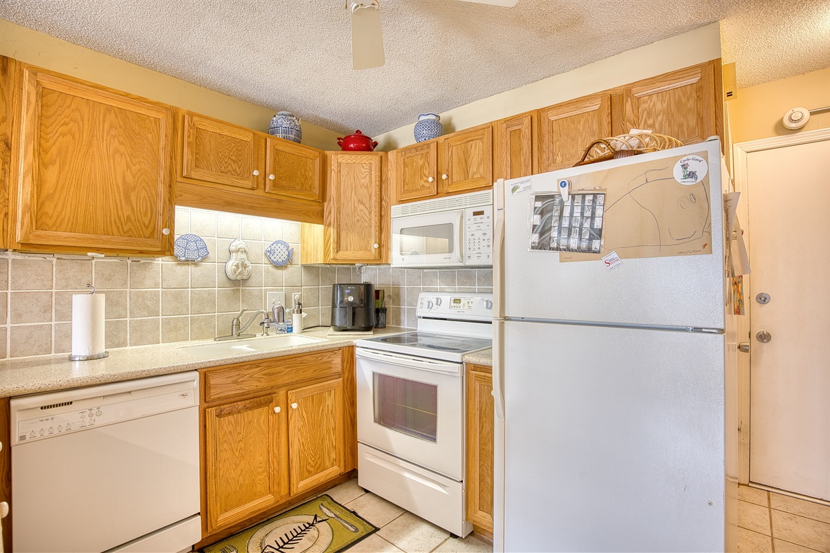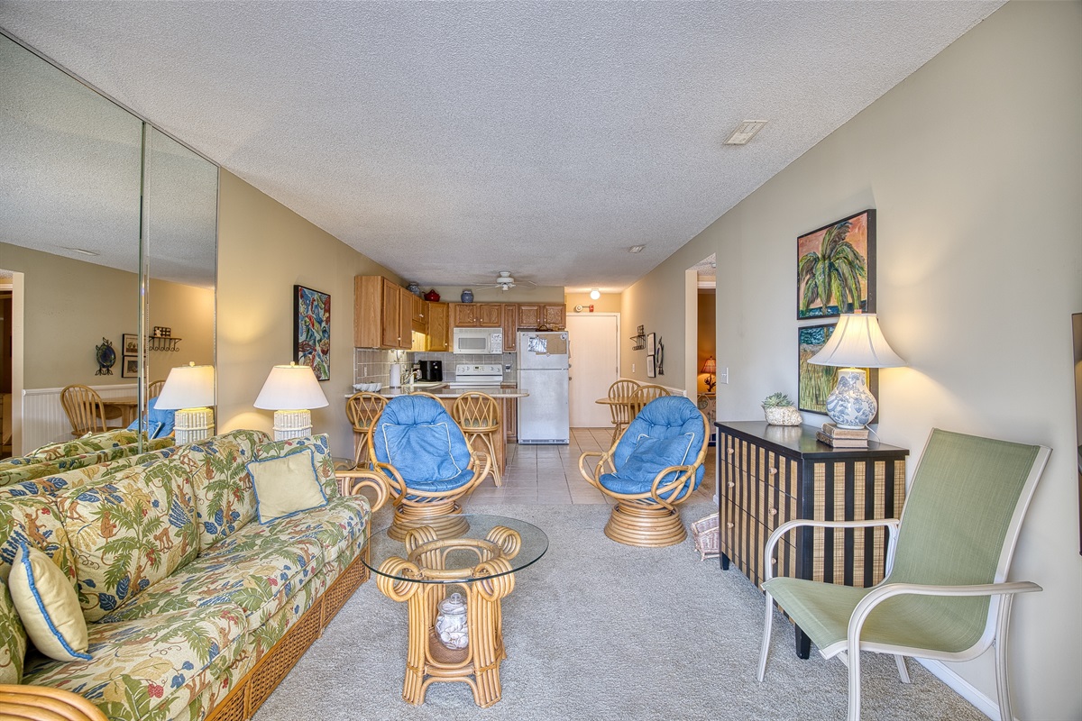 It accommodates up to 5 guests with 2 bedrooms and 1 bathroom. There are 2 parking spaces available. It offers a fully equipped kitchen with coffee maker, microwave, refrigerator, dishwasher, toaster, oven, cookware, flatware, coin-operated washer and dryer, and community pool. Linens and Departure Maid Service Included.