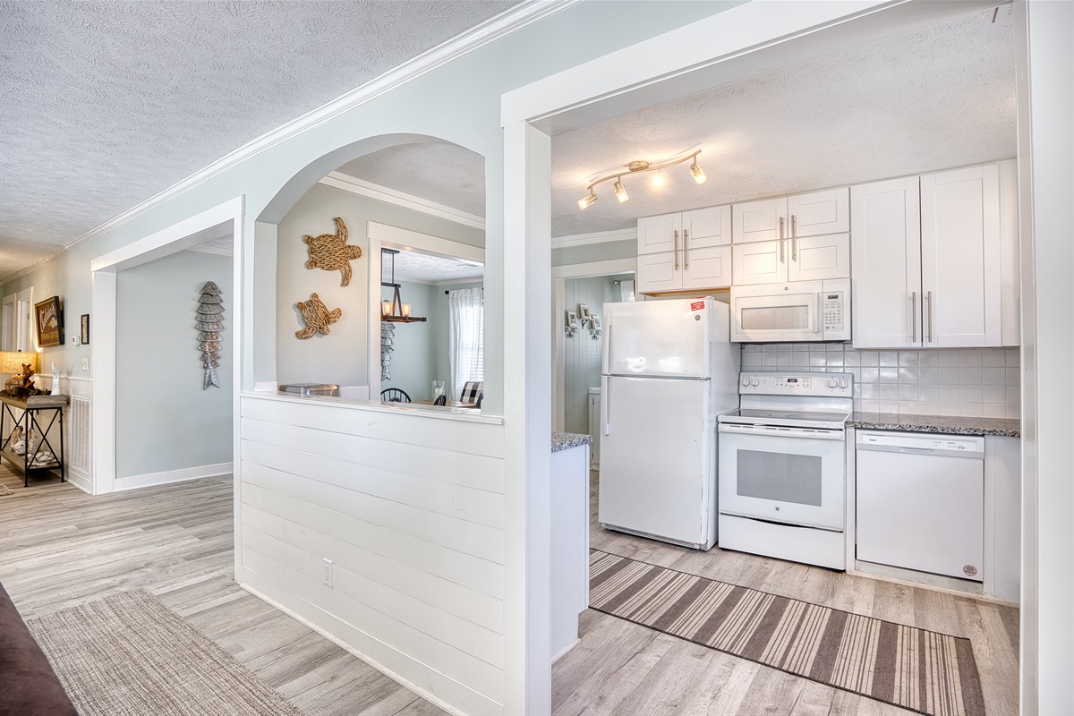 Full Kitchen with coffee maker, microwave, refrigerator, dishwasher, toaster, oven, cookware, flatware