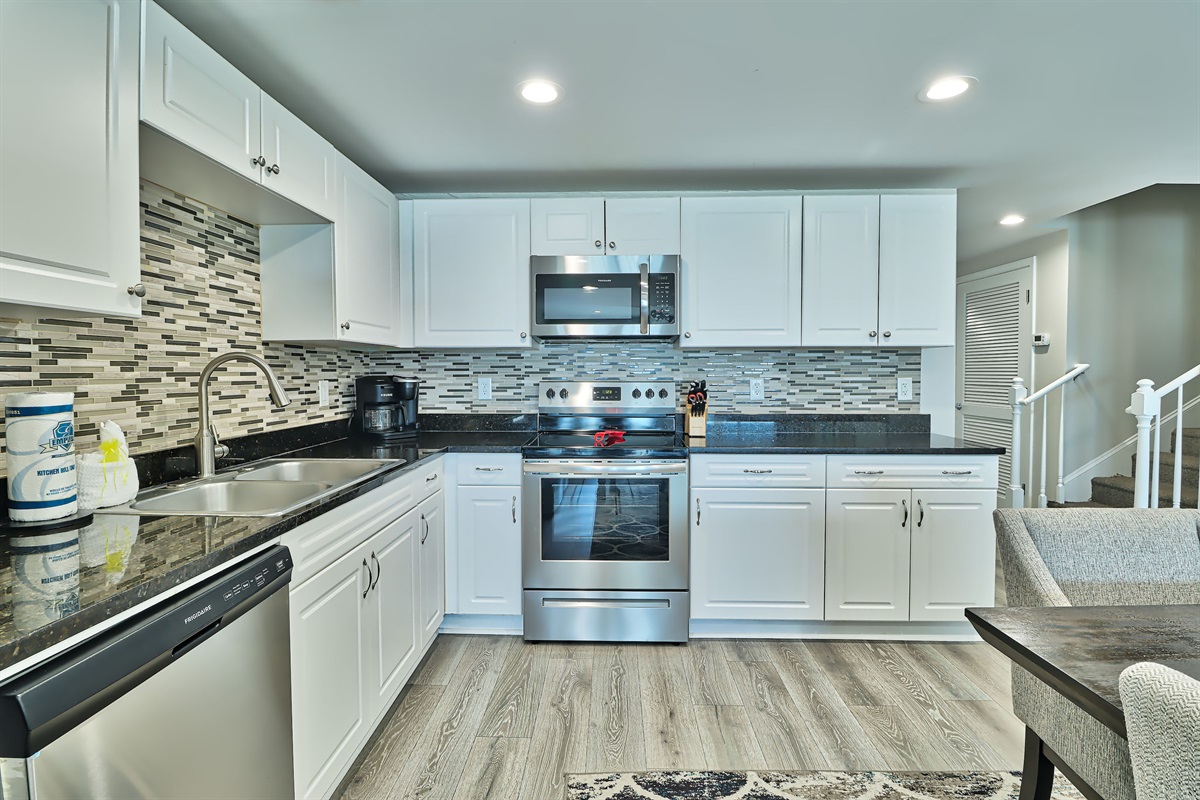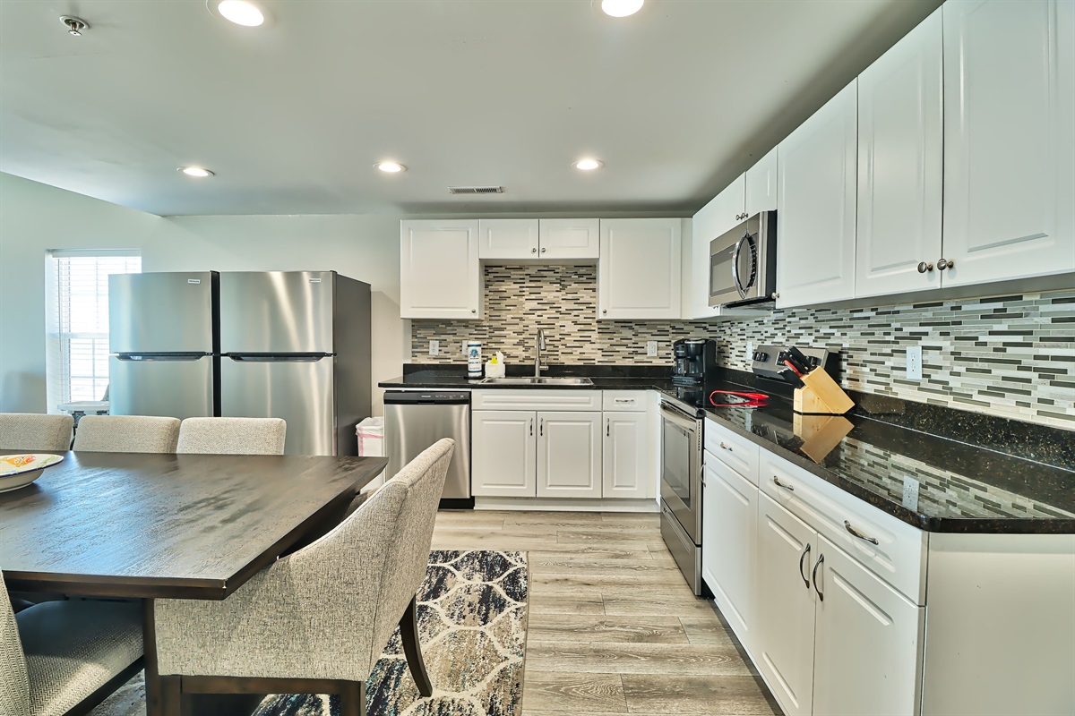 Full Kitchen with coffee maker, microwave, refrigerator, dishwasher, toaster, oven, cookware, flatware