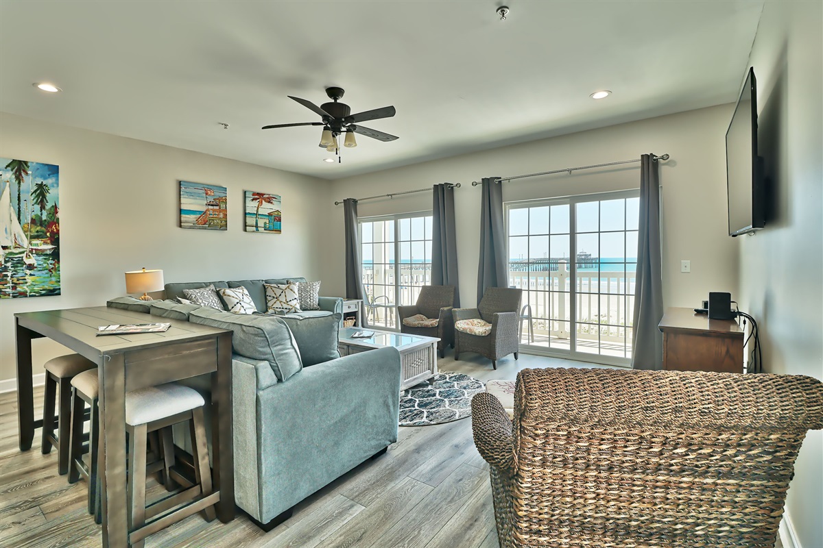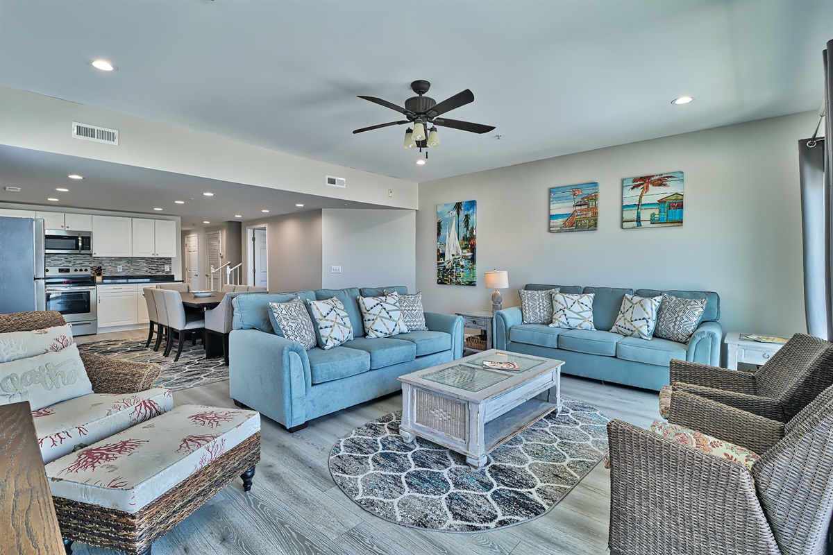 The six-bedroom condo includes six nicely decorated bedrooms with plush beddings. Five full bathrooms with basic toiletries to get your vacation started. A fully equipped kitchen is perfect for cooking lunch or dinner after a day at the pool or beach. You’ll enjoy breathtaking ocean views and feel the warm Atlantic breeze.