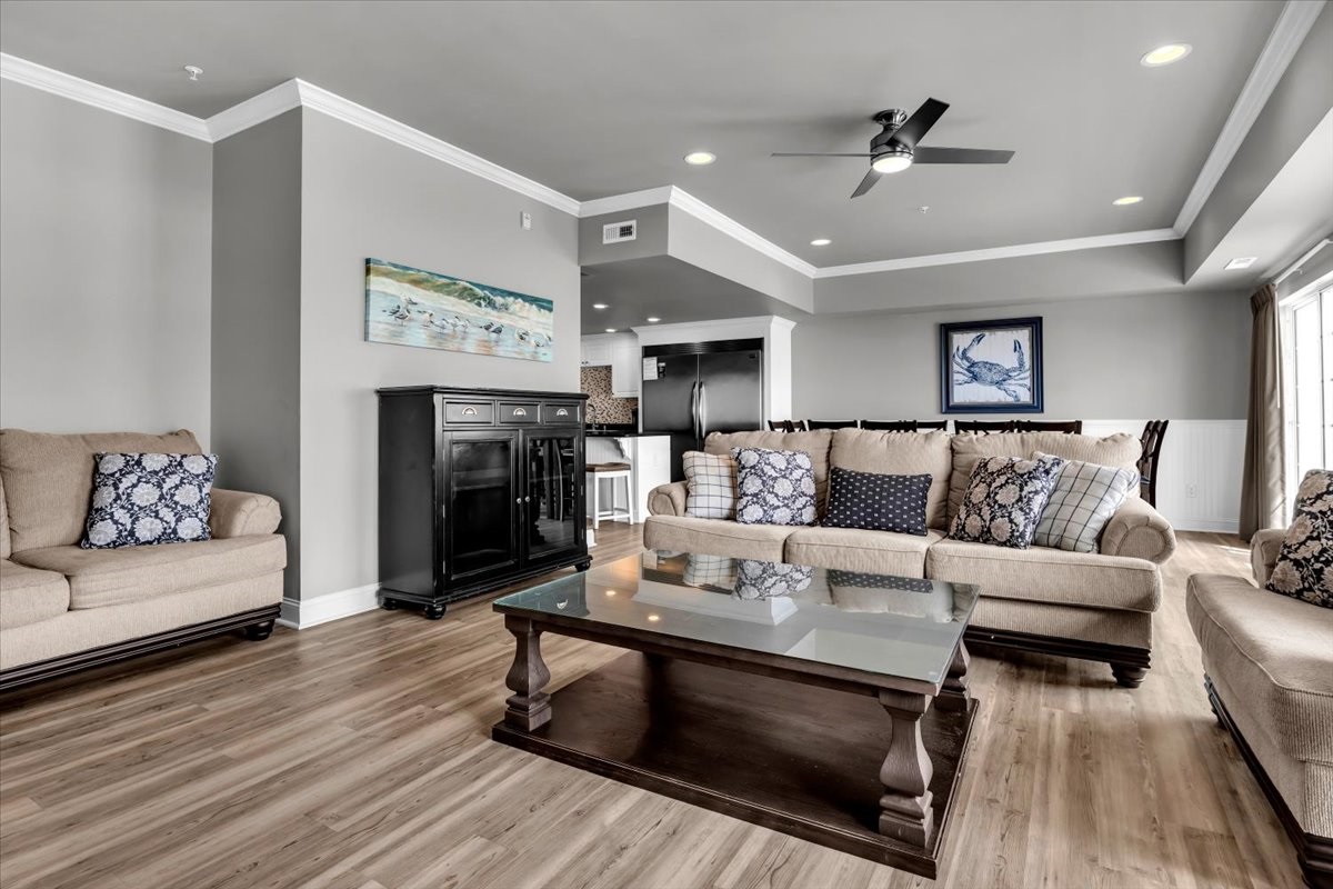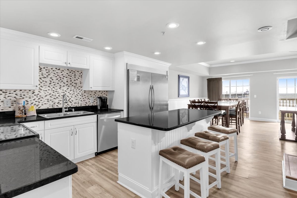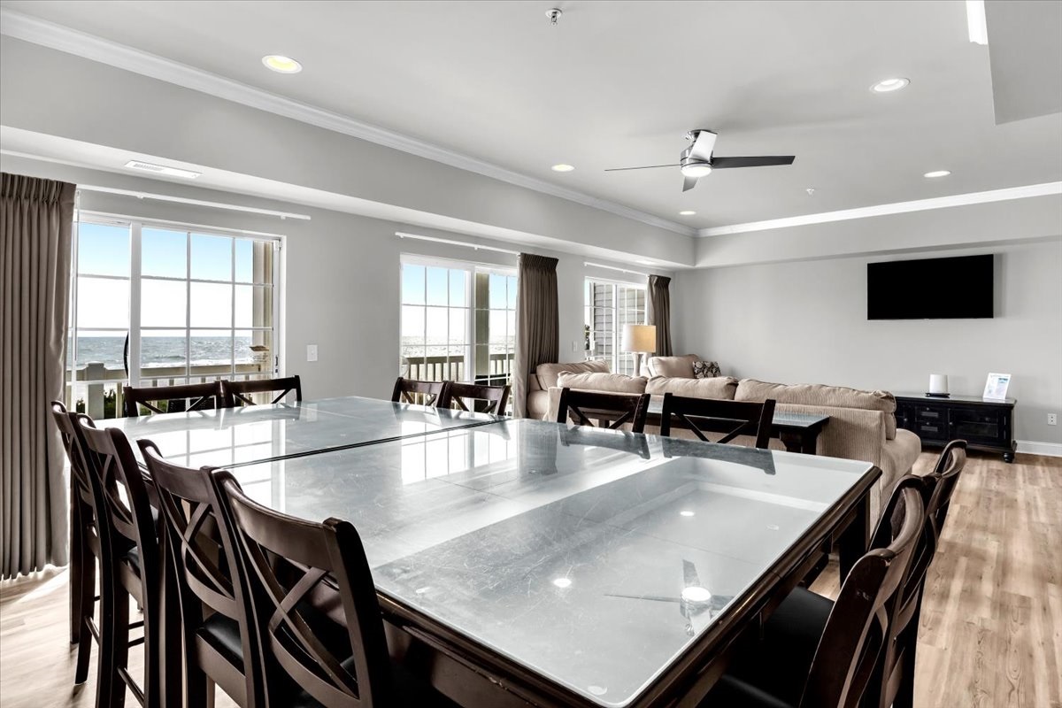The six-bedroom condo includes six nicely decorated bedrooms with plush beddings. Five full bathrooms with basic toiletries to get your vacation started. A fully equipped kitchen is perfect for cooking lunch or dinner after a day at the pool or beach. You’ll enjoy breathtaking ocean views and feel the warm Atlantic breeze.