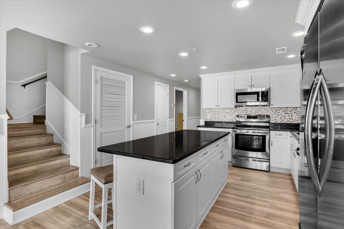 Full Kitchen with coffee maker, microwave, refrigerator, dishwasher, toaster, oven, cookware, flatware