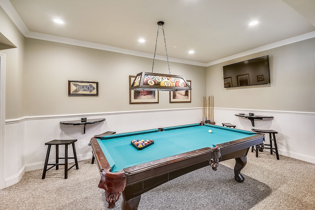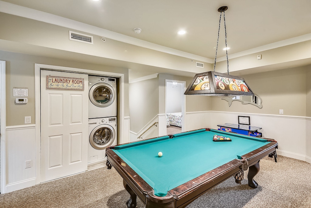 -Amenities: 65" Television, Pool Table, PAC MAN Arcade Table with 60 games, etc