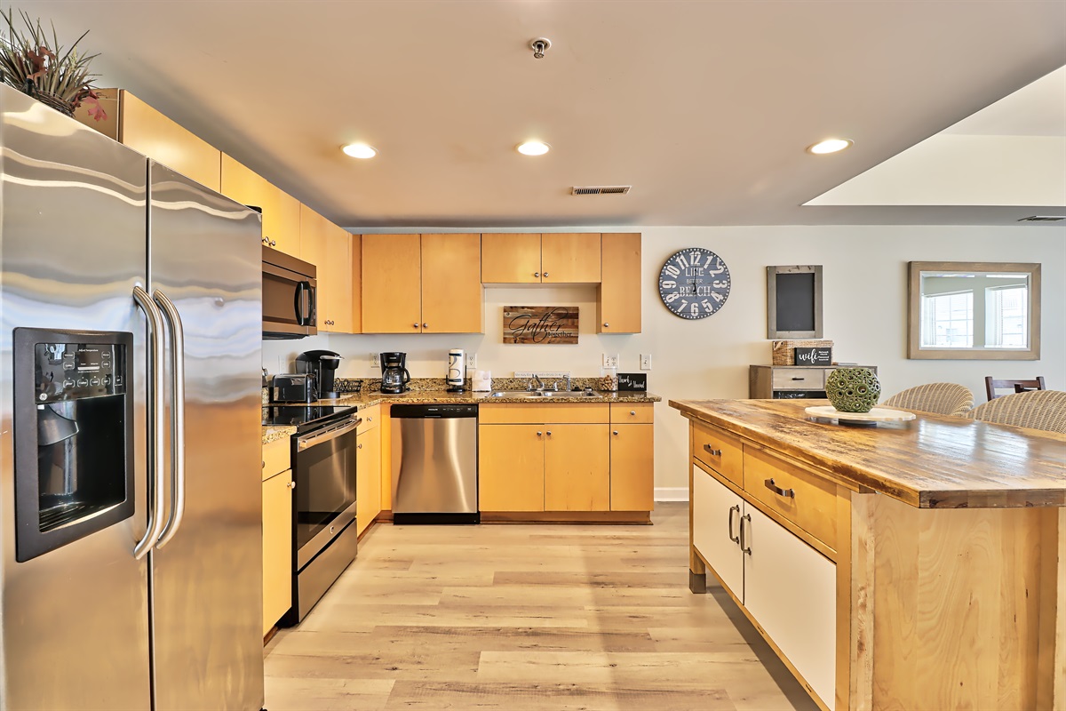 Full Kitchen with coffee maker, microwave, refrigerator, dishwasher, toaster, oven, cookware, flatware