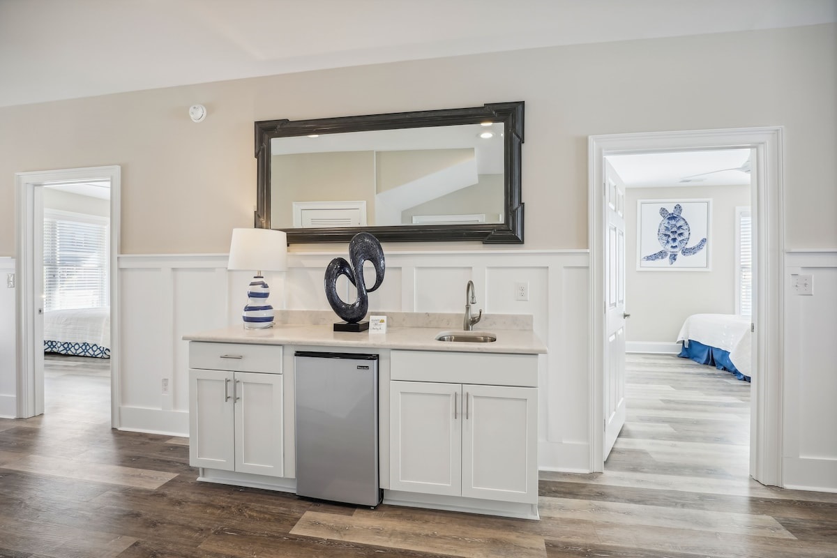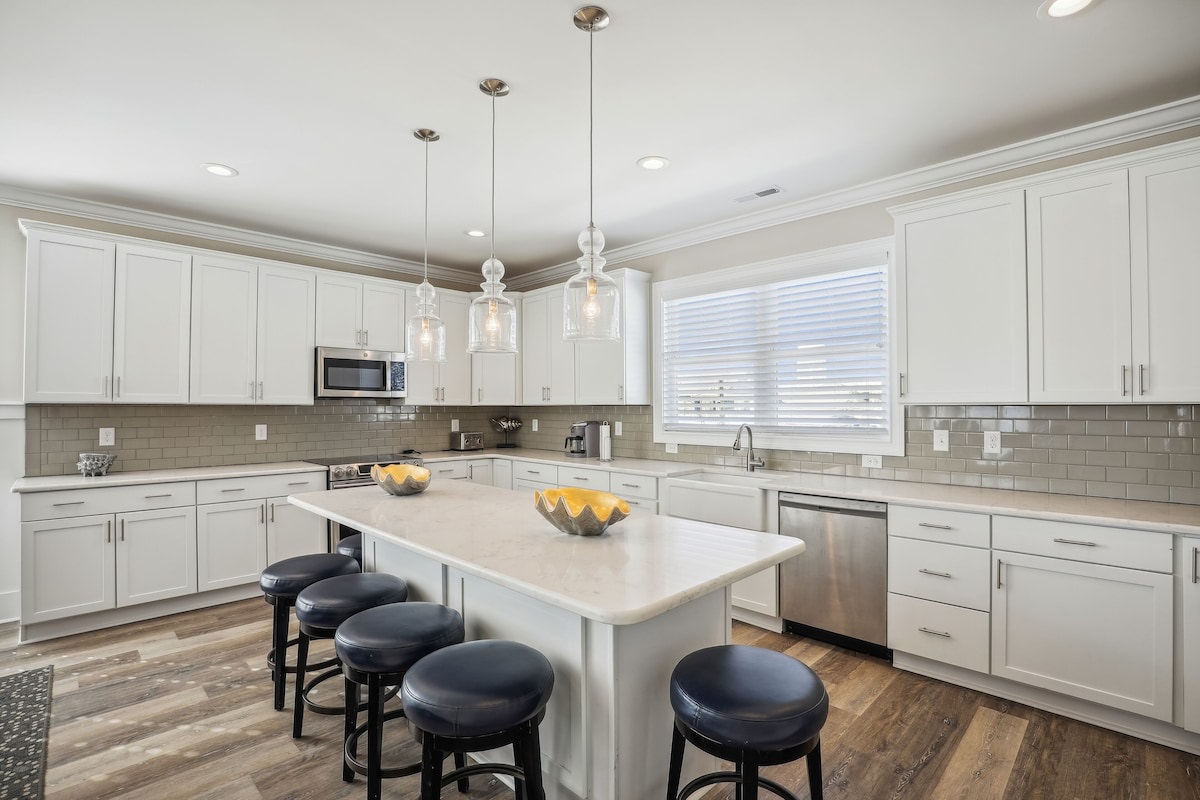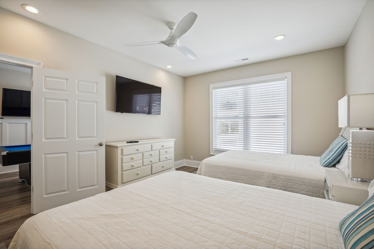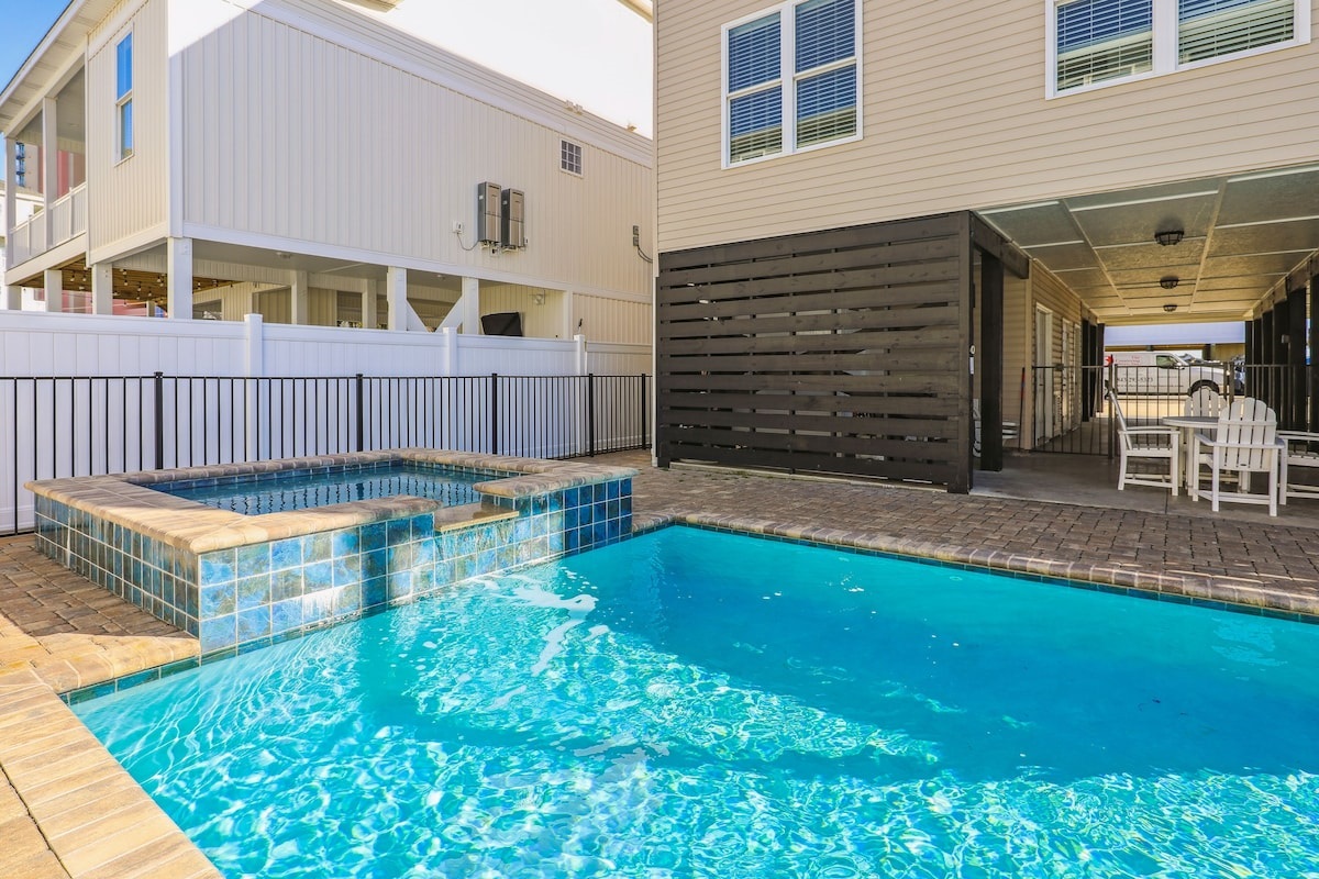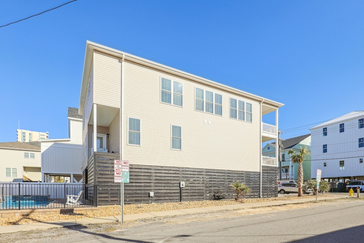 ABOUT THE SPACE: Seaside Escape is a second-row home in the Cherry Grove section of North Myrtle Beach. It accommodates up to 20 guests with 6 bedrooms and 7 bathrooms. There are six parking spaces available. It offers a fully equipped kitchen with stainless steel appliances, coffee maker, microwave, refrigerator, dishwasher, toaster, oven, cookware, flatware, washer and dryer, pool, hot tub, balcony, covered parking, near Public Beach Access and Cherry Grove Pier. Linens and Departure Maid Service Included.