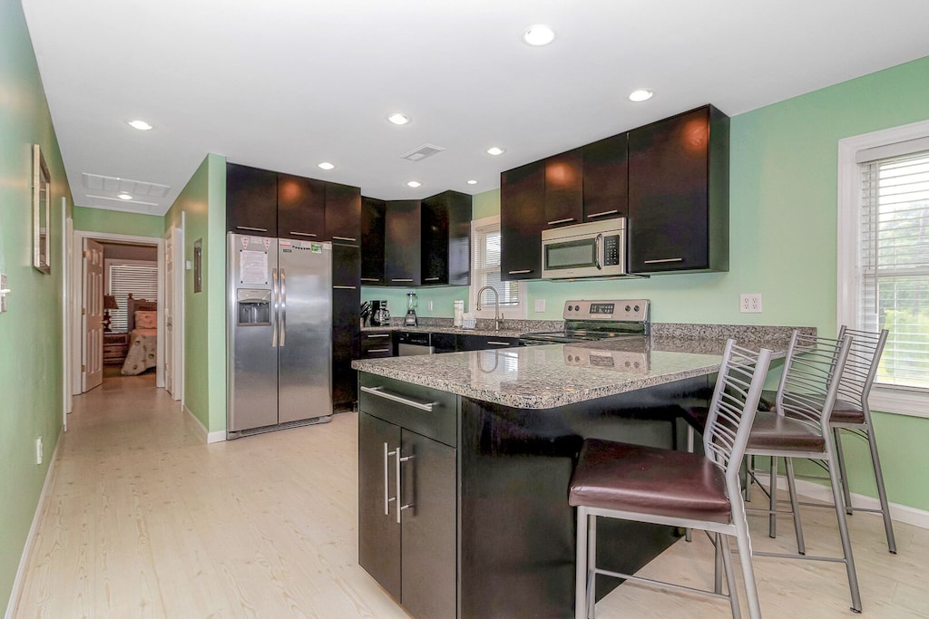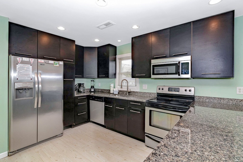 Full Kitchen with coffee maker, microwave, refrigerator, dishwasher, toaster, oven, cookware, flatware
