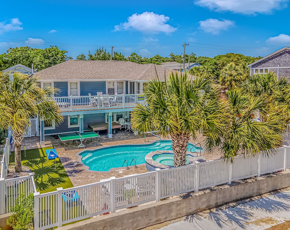 The six-bedroom house includes six nicely decorated bedrooms with plush beddings. Four full bathrooms with basic toiletries to get your vacation started. A fully equipped kitchen is perfect for cooking lunch or dinner after a day at the pool or beach. You'll enjoy breathtaking ocean views and feel the warm Atlantic breeze.