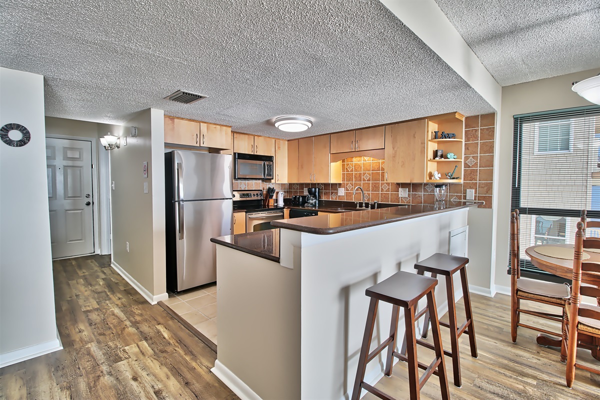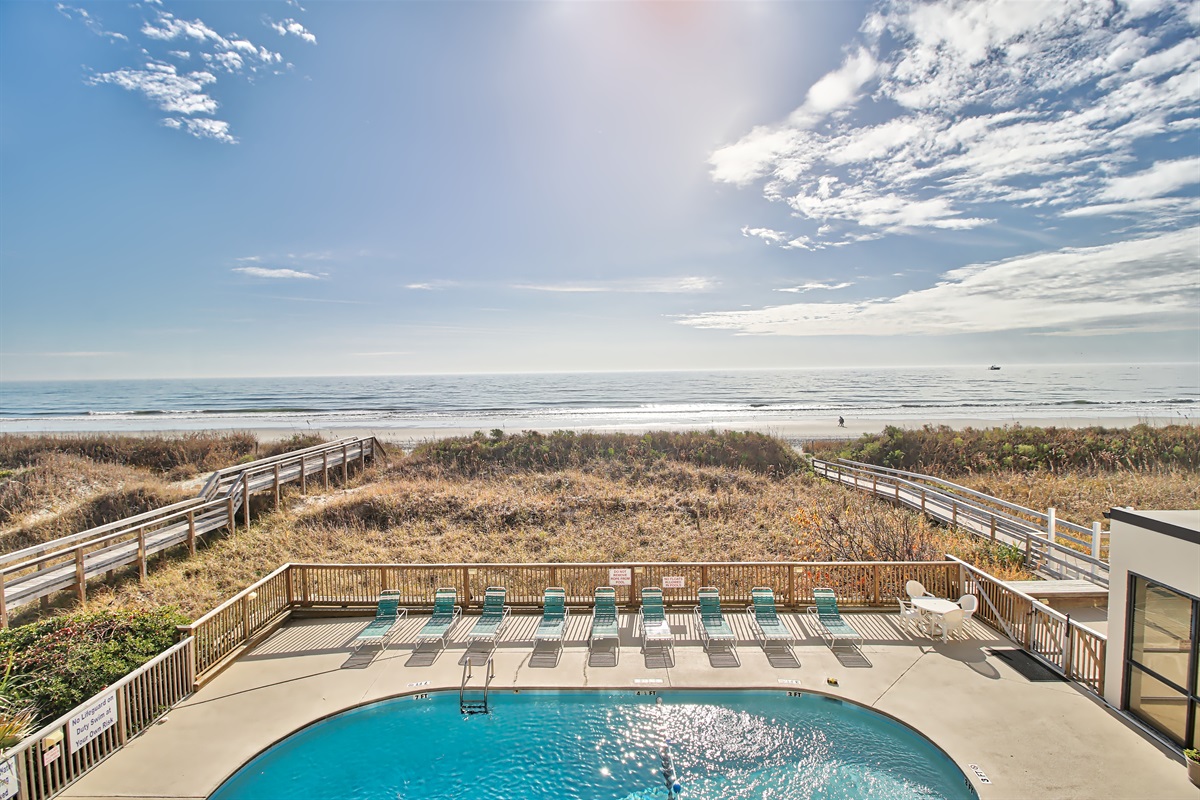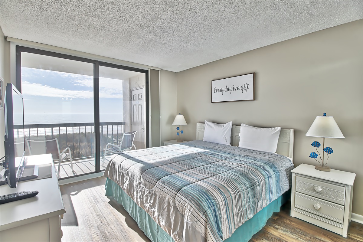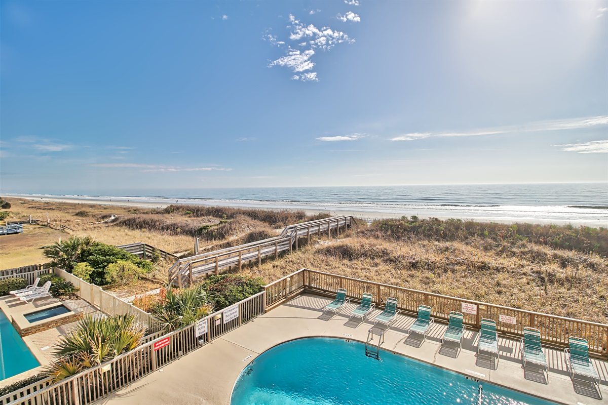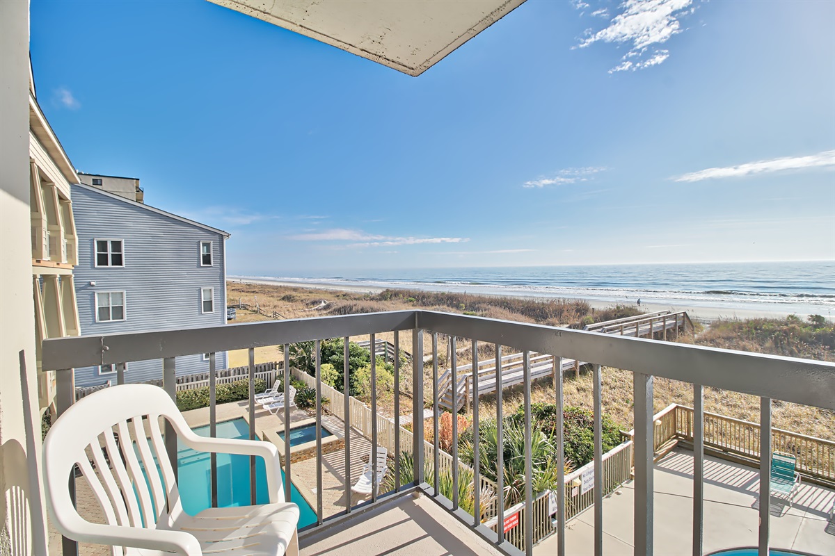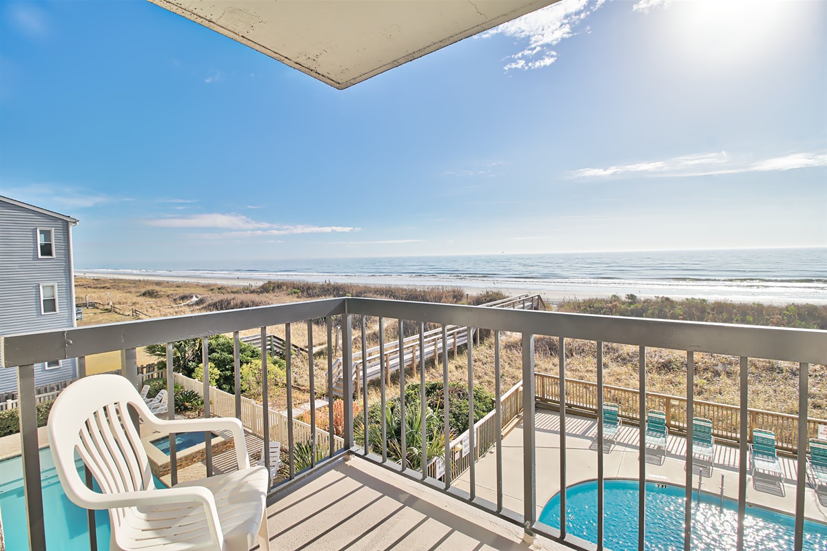 The three-bedroom condo includes three updated bedrooms with plush beddings. Two full bathroom with basic toiletries to get your vacation started. A fully equipped kitchen is perfect for cooking lunch or dinner after a day at the pool or beach. You’ll enjoy breathtaking ocean views and feel the warm Atlantic breeze.
