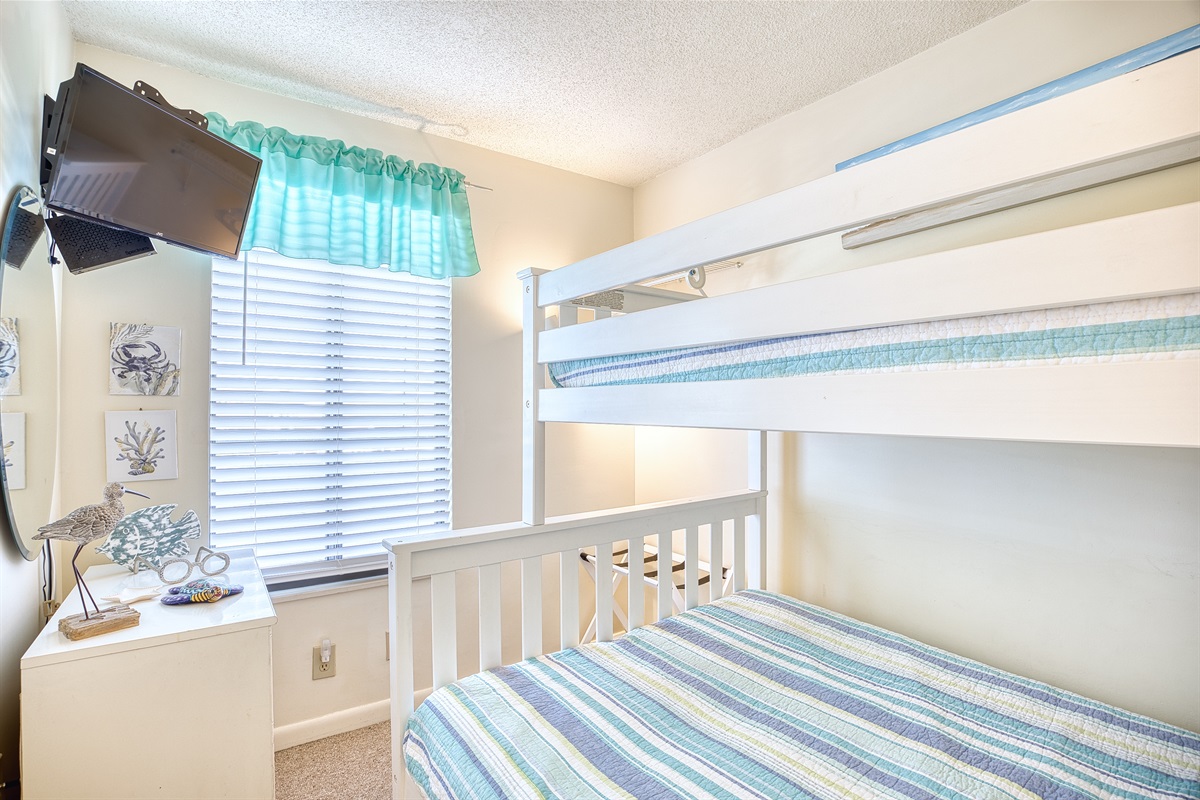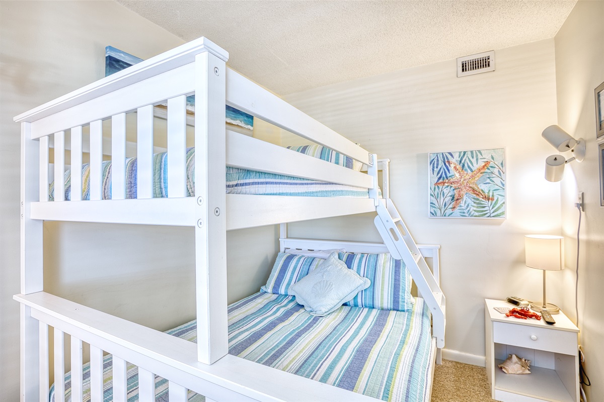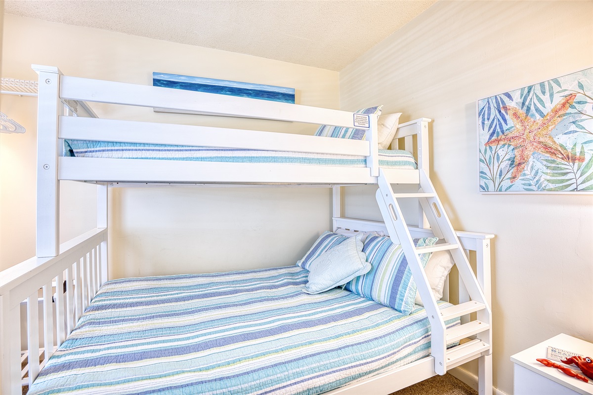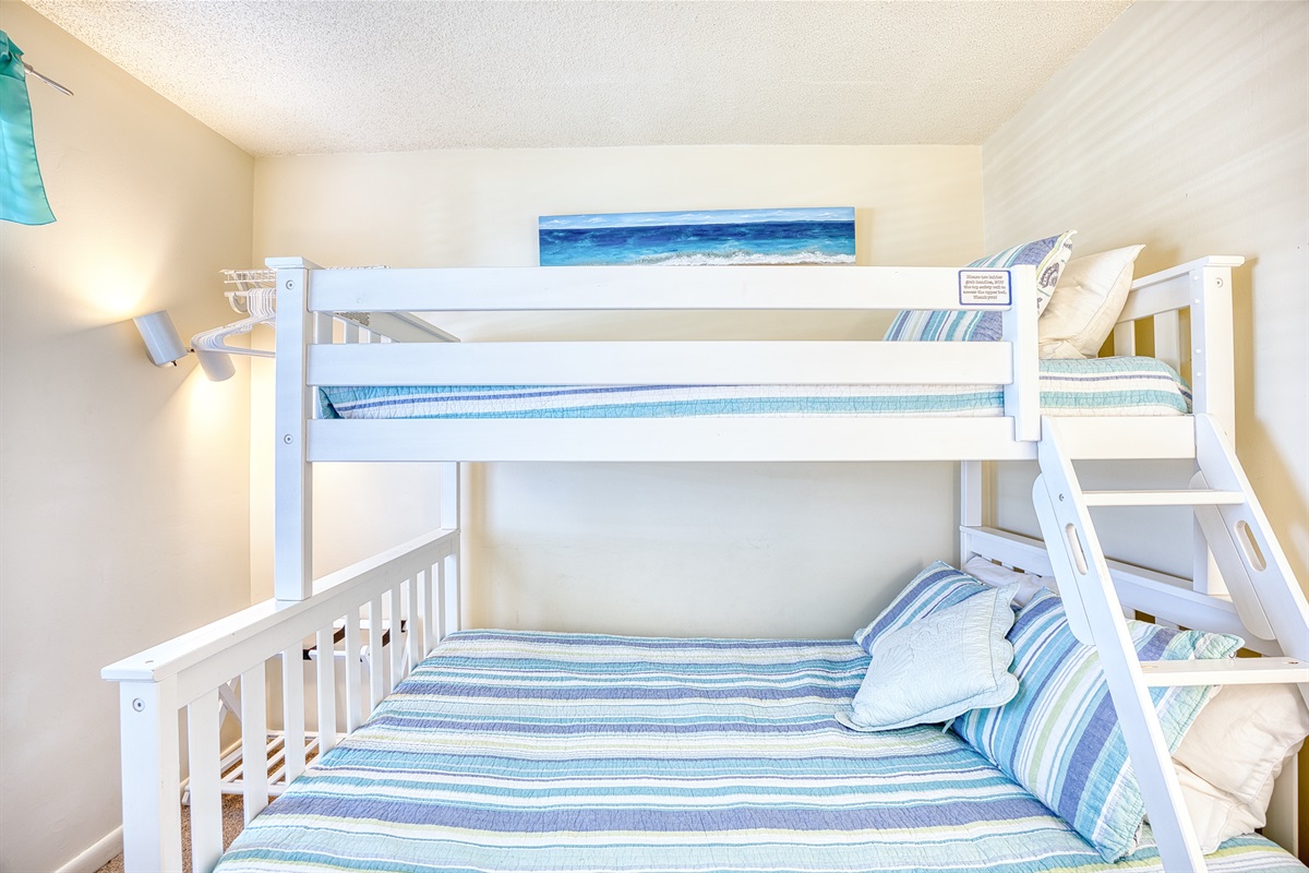 Bedroom Three: Twin over Double Bunk Bed